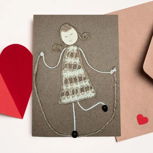 Show your heartfelt appreciation with this Adorable Handmade Thank You Card, the perfect way to express gratitude to your cherished parents or grandparents. This charming card isn’t just a simple note; it’s a thoughtful gesture crafted with love and care. Featuring a delightful illustration of a little girl joyfully jumping rope, this card embodies happiness, liveliness, and the warmth of family connections.