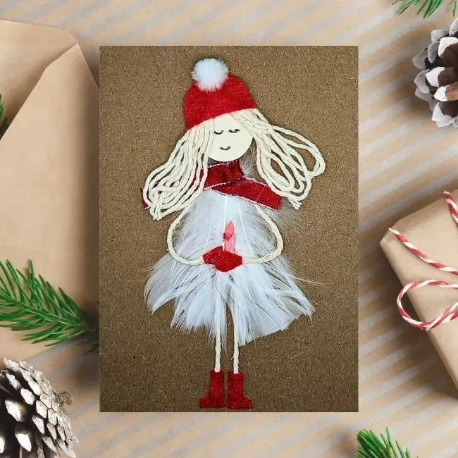 Embrace the art of heartfelt gifting with this Beautiful Homemade Christmas Card, where imagination meets craftsmanship in the delicate form of Mrs Snowflake. Handmade in the UK with ethically sourced feathers and reclaimed wood, this handmade Christmas card exudes rustic elegance, blending organic textures and intricate details into a one-of-a-kind masterpiece. Every curve of the snowflake and stroke of the hand-painted accents reflect the care and passion poured into its creation.