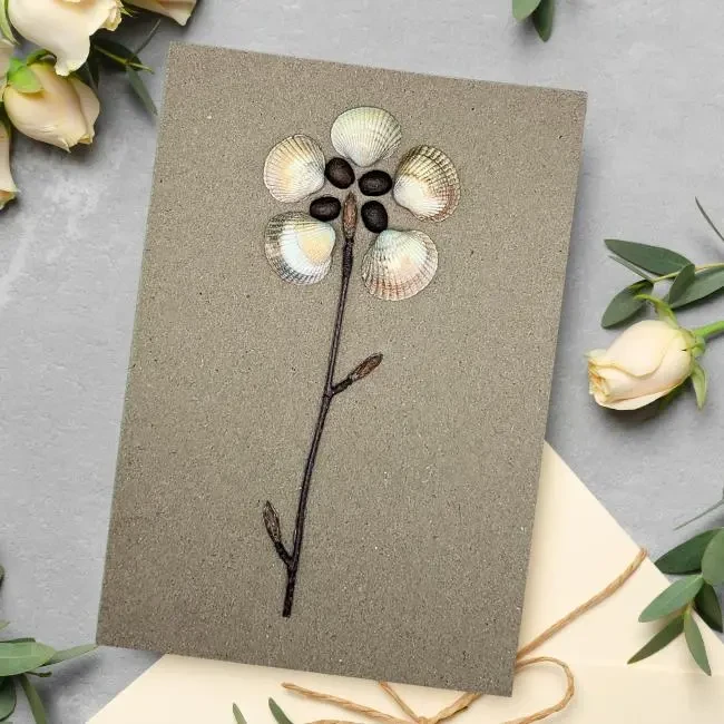 This Nature-Inspired Birthday Card is a special celebration of a loved one’s big day. Handmade with love, it features a delicate flower crafted from seashells, coffee beans, and twigs, creating a rustic and elegant design that stands out. Thoughtfully designed to bring a smile, this unique card is more than just a greeting—it’s a keepsake that will be cherished.